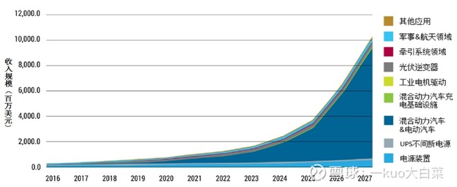 深藍(lán)色的區(qū)域,代表著新能源汽車,貢獻(xiàn)了最大的增量,而其中最大的市場在中國。 在高頻、高速、高功率的5G通信時代,用碳化硅做襯底的氮化鎵射頻器件,也將迎來發(fā)展機(jī)遇期。